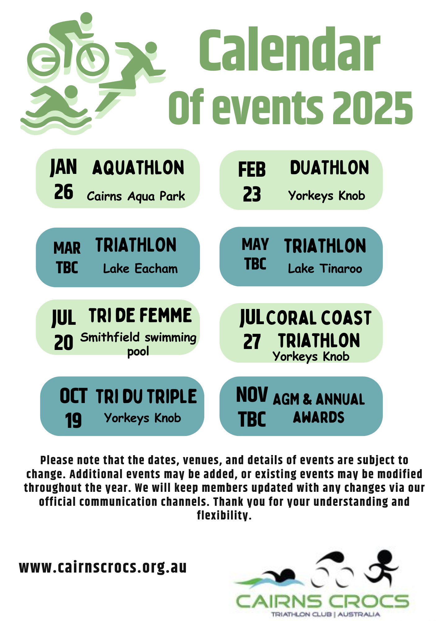 Please note that the dates, venues and details of events are subject to change. Additional events may be added or existing events may be modified throughout the year.